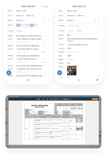 현장의 관리자 마다 다른 문서 양식을, 시스템에 맞춰 표준화된 문서로 관리 할 수 있습니다.